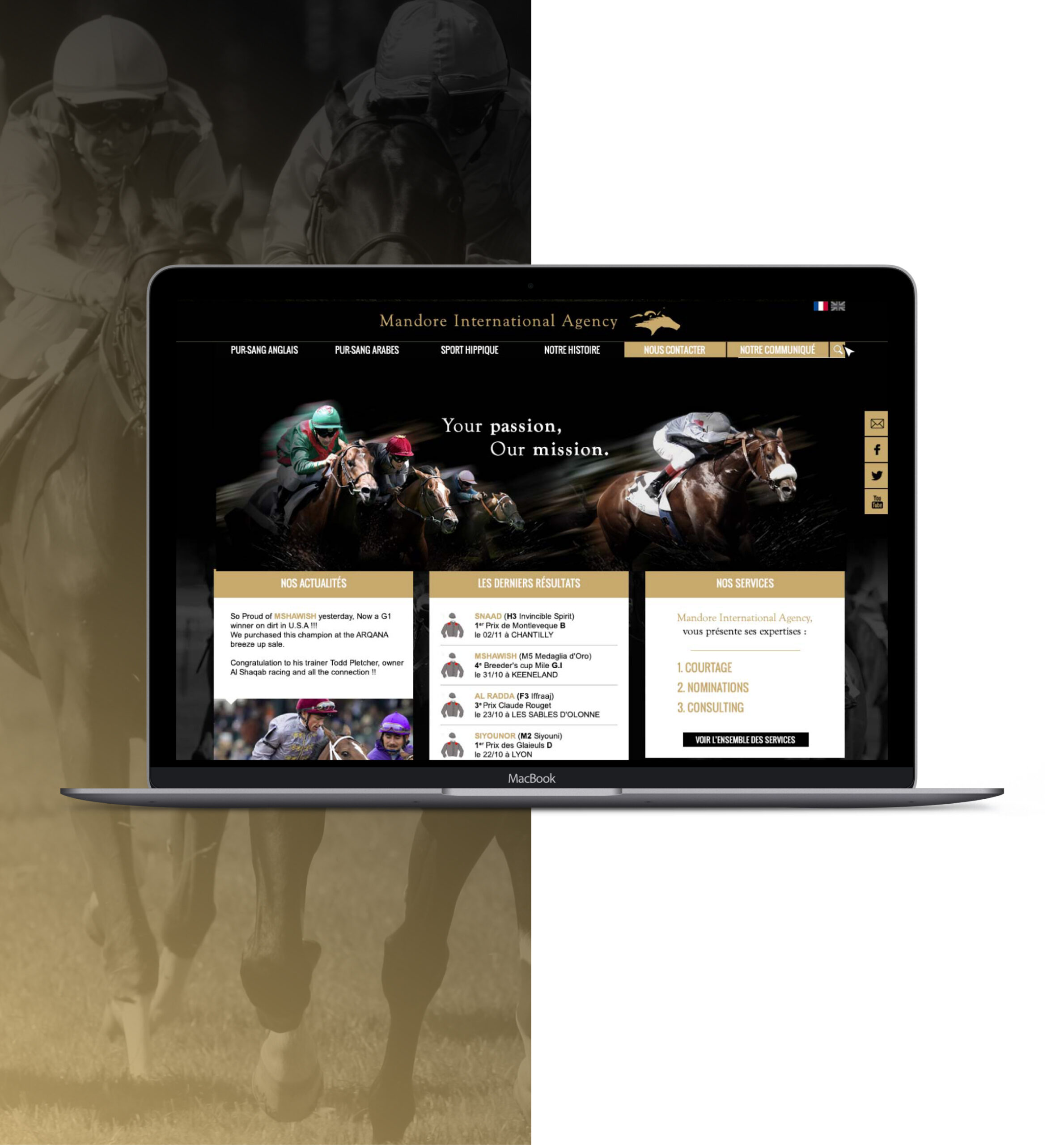 Réaliser un site internet vitrine de 5 pages en 2 langues, visible sur tous les écrans existants pour Equ’Hip Avocat, le cabinet parisien en droit équin et droit des affaires fondé par Holly Jessop. Le site a pour but de présenter clairement les deux spécialisations équine du cabinet, de mettre en avant l’activité de celui-ci et de toucher une clientèle avertie à travers une mise en page simple et élégante. Le site est modifiable par l'équipe marketing en charge de la communication.